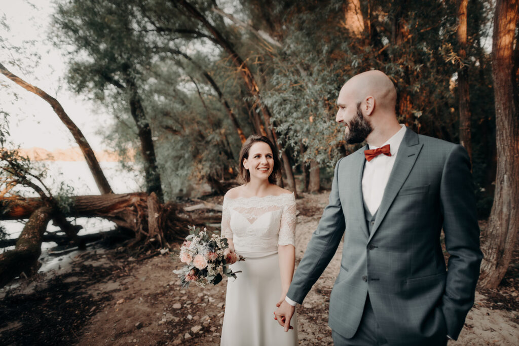 Allen Naturliebhaber zeigen wir heute eine wunderschöne Location mitten in Mainz. Der Mombacher Strand befindet sich nur wenige Minuten von der Mainzer Innenstadt entfernt. Ein abgelegenes Naturschutzgebiet, das sich ideal für ruhige und stimmungsvolle Brautpaarbilder eignet. Am Mombacher Strand gibt es riesige Weiden, alte urige Baumstämme, hohe Wiesen mit Wildblumen und vieles mehr. Besonders zur Abendstunde, wenn die Sonne am Himmel allmählich untergeht, entsteht ein wunderschönes Licht für Brautpaarbilder.